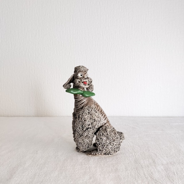 スパゲッティプードルが初登場! スタッフォードシャードッグ専門店が厳選した、陶器のプードルさん。 実はこの子、1950年代に日本で誕生し、海外へと旅立ったのちに“里帰り”したヴィンテージドッグなんです。 プードルの毛並みをスパゲッティのような細やかな陶器細工で表現していることから、「スパゲッティプードル」と呼ばれるようになりました。 あざとくも愛らしい表情と、ぴたりと揃えた前足の上品なシルエットをぜひお楽しみください✿ ■高さ:約14cm ■横幅:約7cm ■奥行:約8cm ※大きさには多少の誤差があることをご理解ください ■状態: 割れや欠けも見られません。 きれいな状態です。 -------------------------- ■発送:60サイズ ※当店で扱うスタッフォードシャードッグは数十年または100年以上前に製造され、当時から愛されていたアンティーク、ヴィンテージ商品です。記載できない細かな傷や汚れなどある場合がございます。ご承知の上ご購入頂きますようお願い致します。