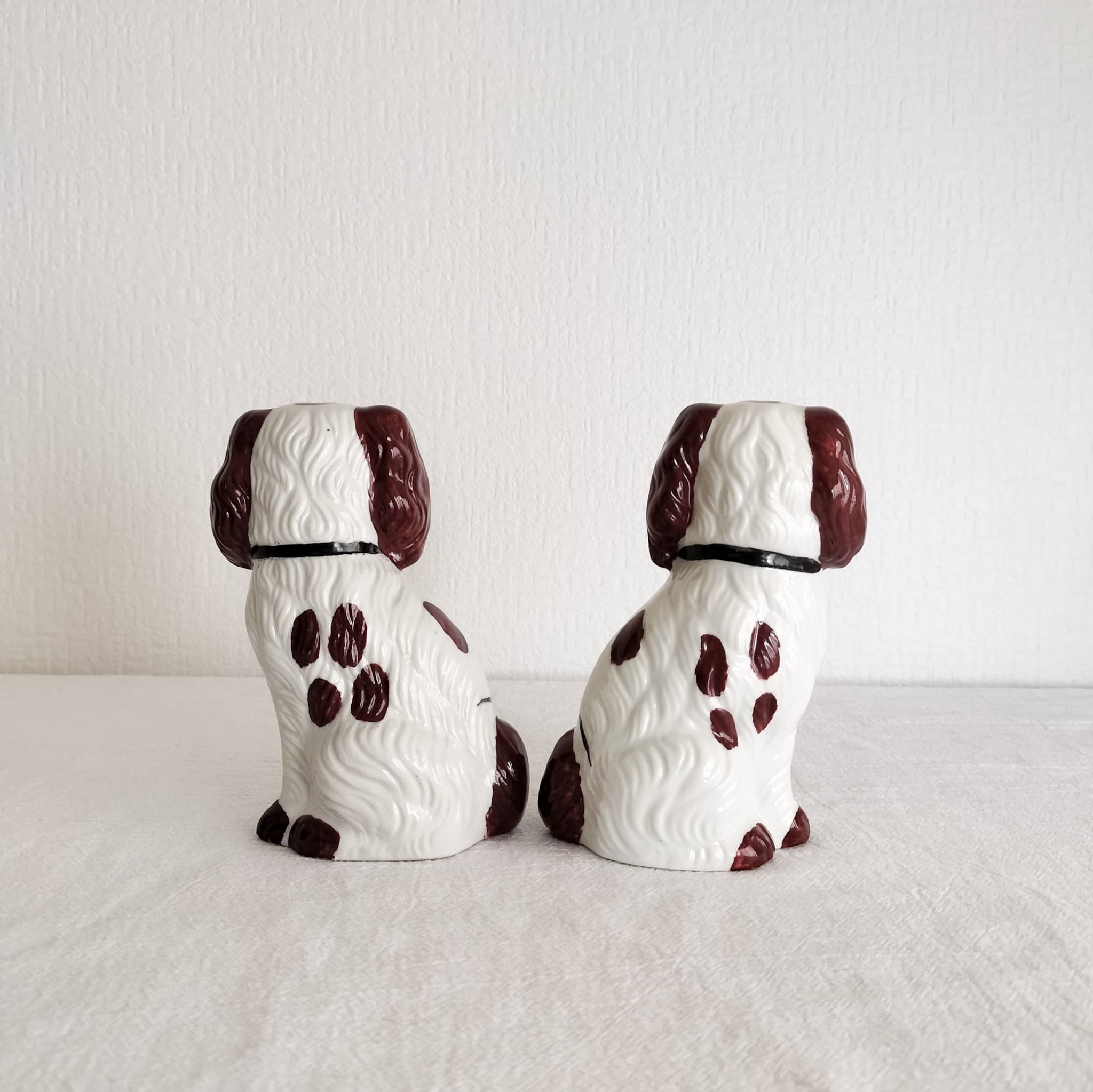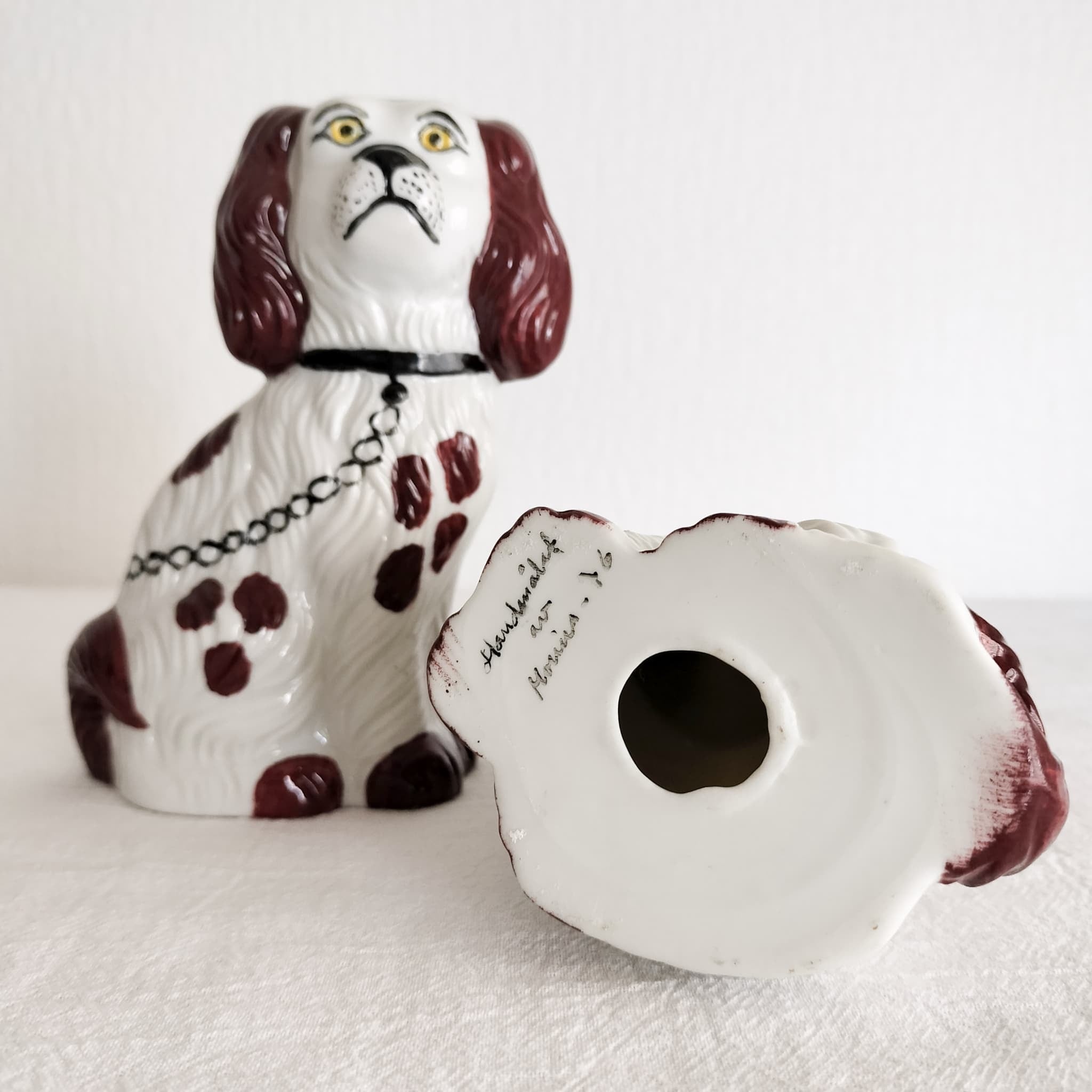 スタッフォードシャードッグは陶器がメインですが、このペアは磁器でできていると見られる軽くて薄い素材です。