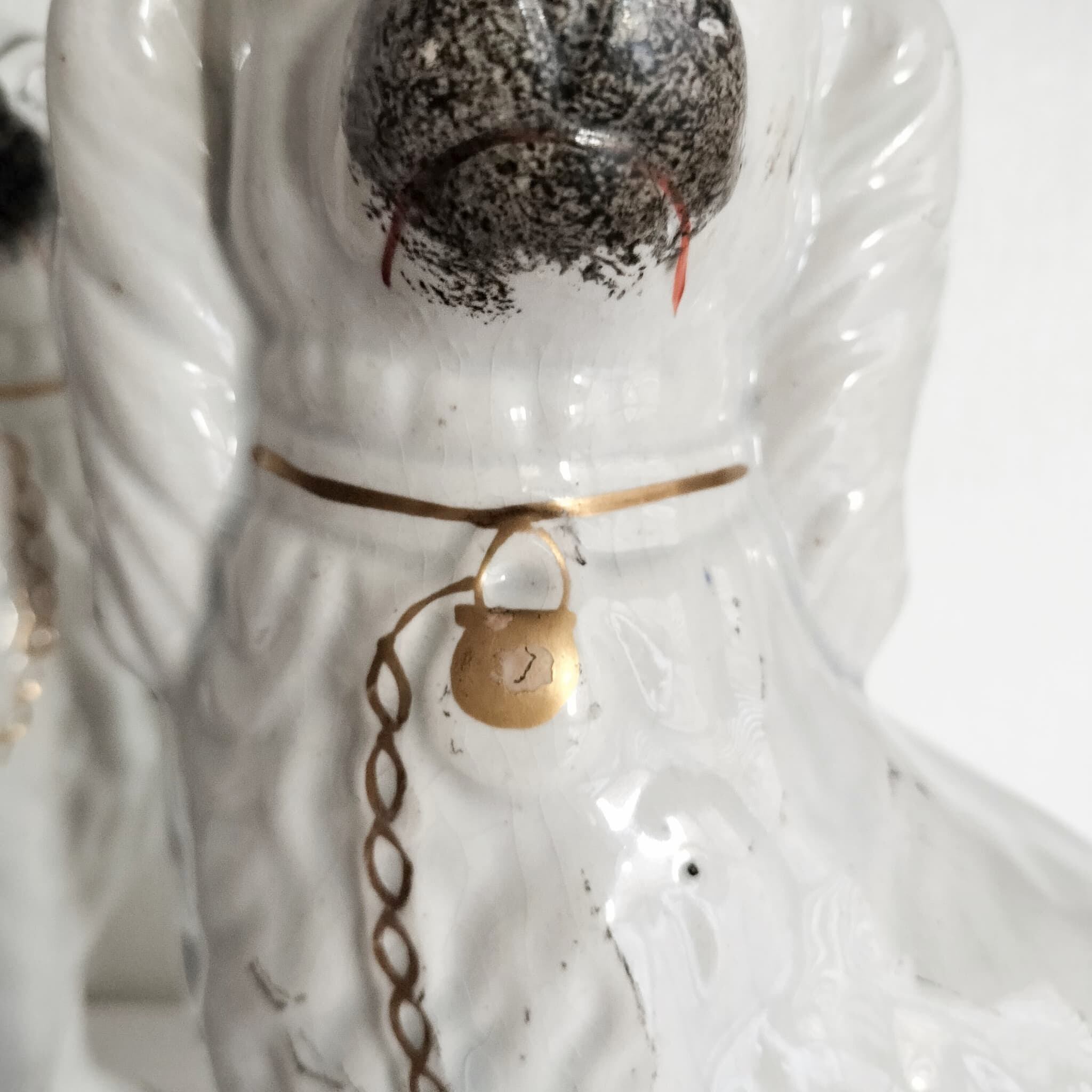 詳細:鼻部分と後ろ側の底部に小さな欠けが見られます。また、背面に製造過程において釉薬の中に気泡が生じたことによるいくつかの斑点が見られます。