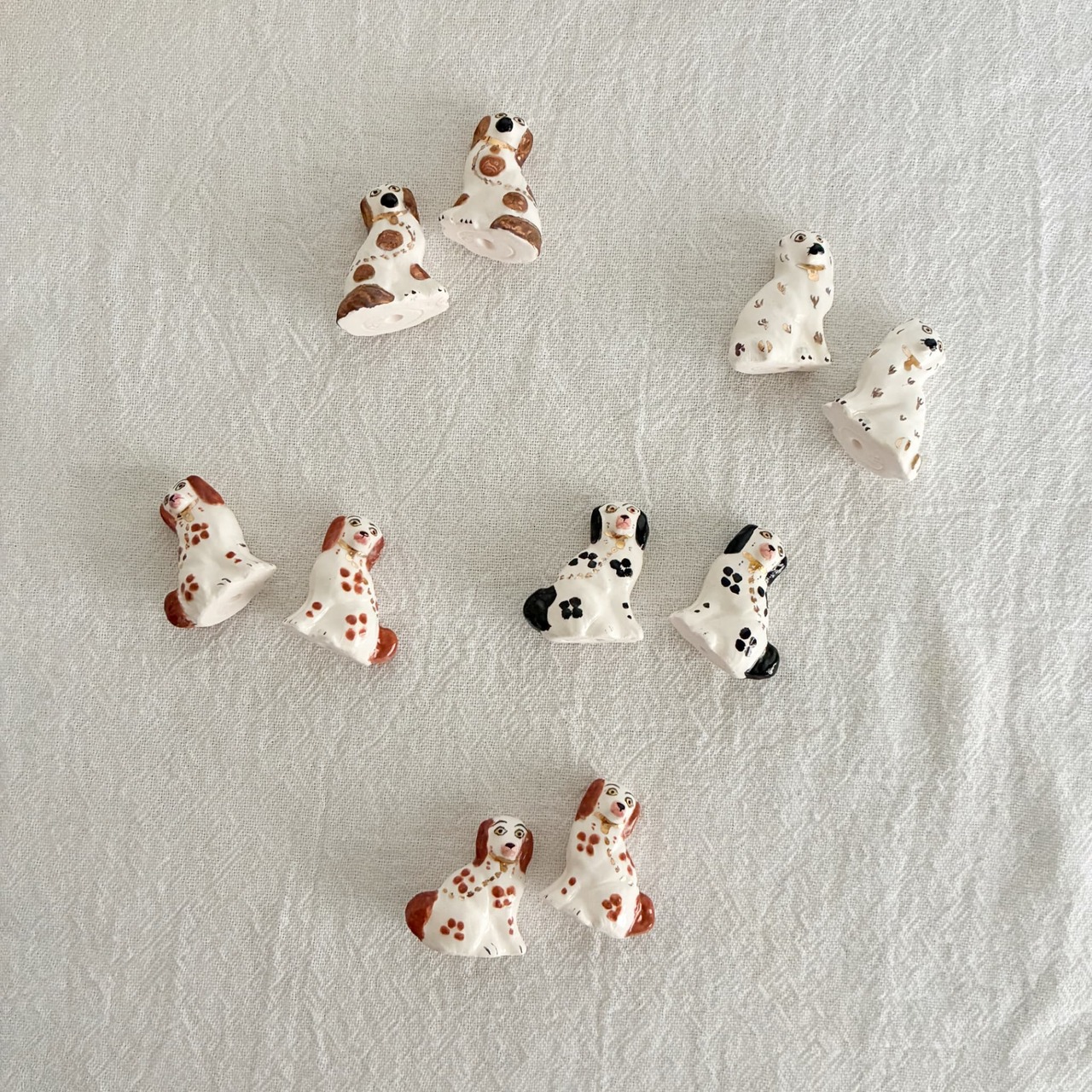 18〜19世紀のイギリス・スタッフォードシャー陶器に着想を得て、原型制作から型作り、鋳込み、焼成、絵付けまですべて伝統的な工程で仕上げられています。