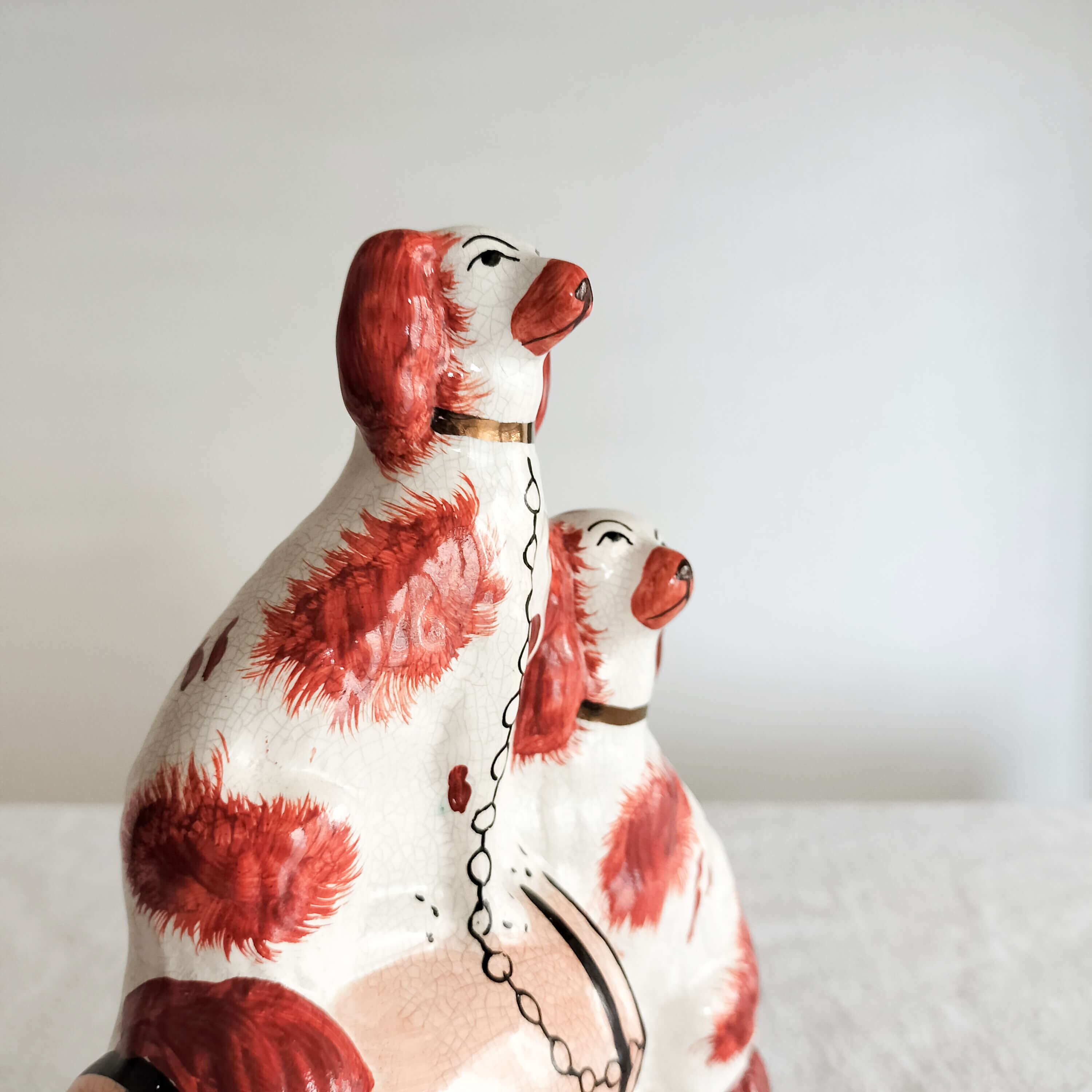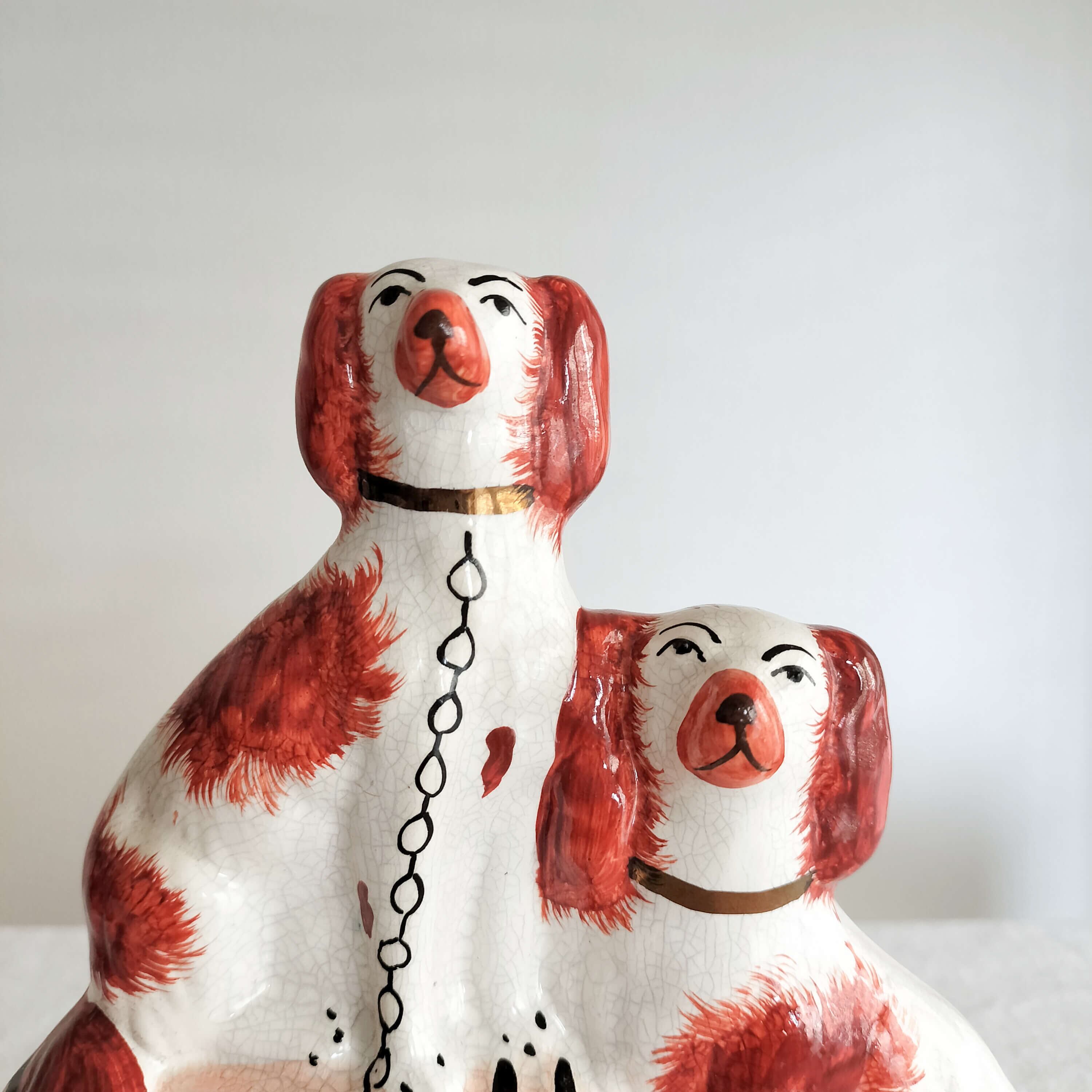 眉毛と鎖が特徴的なスタッフォードシャードッグが並ぶレアなデザインです。