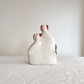 樽と並ぶ赤毛ペアドッグ スタッフォードシャードッグ 高さ20cm