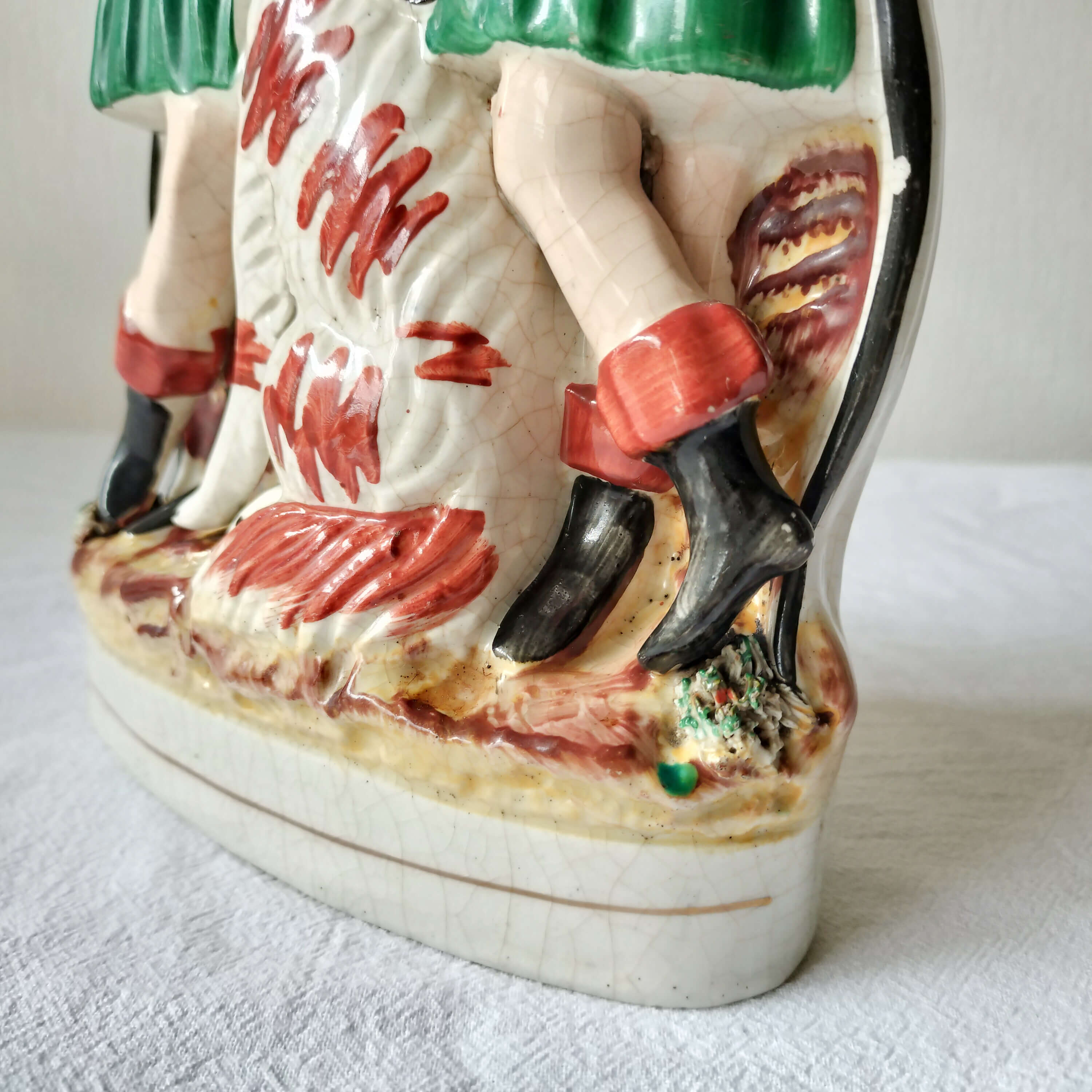 ハイランダーの衣装は「勇敢さ」「郷土愛」の象徴として人々に好まれ、スタッフォードシャー陶器にも数多く登場します。